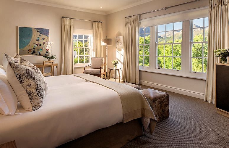 Set at 12 Huguenot Road in the heart of Franschhoek, the hotel places guests steps from boutiques, galleries and lauded restaurants. The Cape Dutch façade opens to leafy gardens and a calm pool courtyard, while the mountains frame the valley beyond. Complimentary shuttles link to Leeu Estates in about five minutes for spa therapies, gym time and expansive vineyard vistas. It’s a polished village base that keeps the Winelands’ highlights—cellar doors, art and nature—within effortless reach.