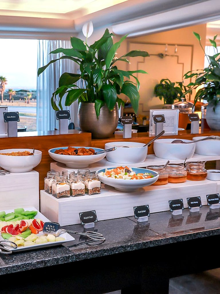 Accommodation spans 114 well-appointed rooms and suites, many with partial or full sea aspects. Expect comfortable beds with crisp linens, ensuite bathrooms with bath and shower combinations, air-conditioning, tea and coffee facilities, television, and reliable Wi-Fi. Family-friendly options add extra space or separate sleeping areas, while higher categories introduce seating nooks and better views. Neutral tones and light woods keep things bright and uncluttered, ideal for beach days and easy city exploring.