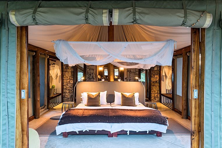 - Seven luxury tents set around a natural, year-round waterhole for armchair game viewing.