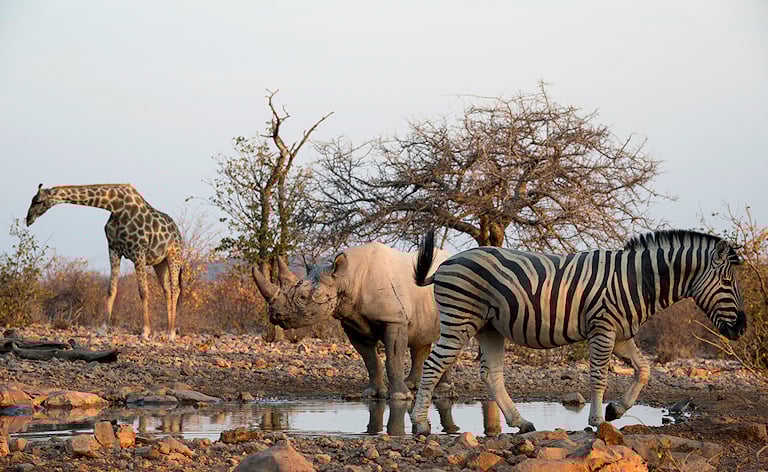 By early afternoon we arrive at Ongava Lodge, situated on a private reserve bordering Etosha. Ongava is recognized for its pioneering conservation work, including successful rhino protection and habitat management programs. After settling in, we join an afternoon game activity on the reserve, where sightings often include both black and white rhino, as well as lion, giraffe, and numerous plains species. As the sun sets across the bushveld, Ongava reveals its rich wildlife and peaceful wilderness atmosphere.
