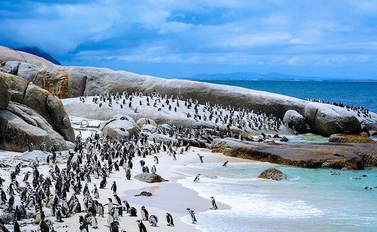 Continuing into the Cape of Good Hope section of Table Mountain National Park, we visit Cape Point, a dramatic headland known for its soaring cliffs, rich maritime history, and sweeping ocean vistas. In the afternoon we stop at Boulders Beach, home to a resident colony of African penguins, one of only a handful of land-based penguin colonies in the world. Strolling along the boardwalks offers an up-close look at these charming, endangered birds in their natural coastal habitat before returning to the city in the late afternoon.