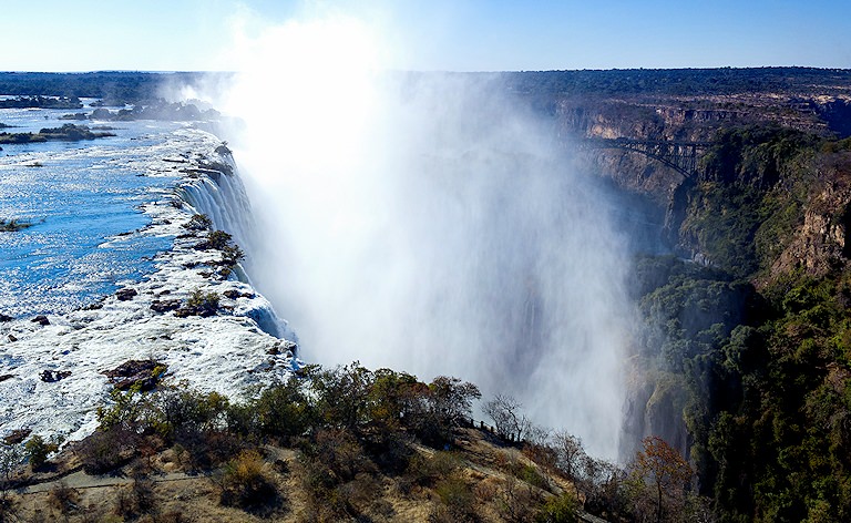 This morning we set out to discover the magnificent Victoria Falls on a guided visit through the rainforest pathways that curve along the edge of the gorge. Known locally as “Mosi-oa-Tunya”—the Smoke that Thunders—the Falls span more than 1,700 meters, making them the widest curtain of falling water in the world. As we explore a series of viewpoints, we experience the spray rising like mist, hear the thunderous roar echoing through the forest, and take in dramatic vistas of the Zambezi River plunging into the depths below.