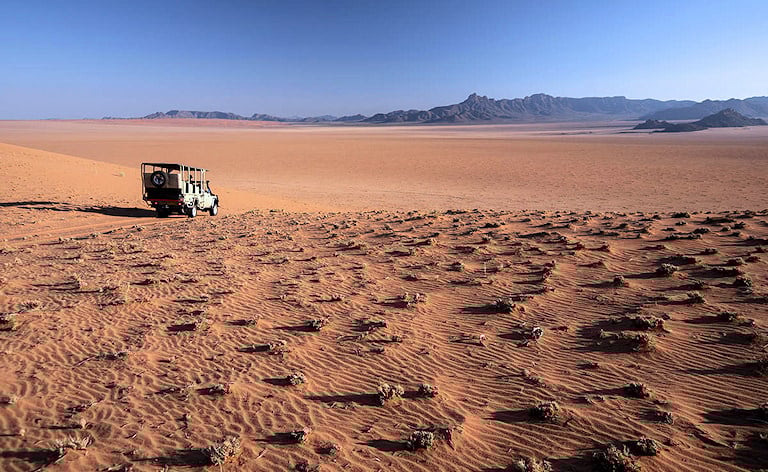 In the morning, your experienced African Sky guide meets you at Hotel Heinitzburg and begins the overland journey south toward Sossusvlei. The route leads through Namibia’s vast central highlands before descending dramatically toward the Namib Desert—widely considered the world’s oldest desert, with dunes shaped by winds that have blown here for millions of years. Along the way, the shifting terrain highlights the immense geological age and openness of the country.