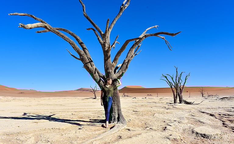 Today, together with your African Sky guide, you set out early to explore the towering dunes of Sossusvlei, some rising over 300 meters and ranking among the highest in the world. These dunes owe their rich red color to oxidized iron in the sand—an indication of their immense age. Wander across the ancient sands, climb a dune if you wish, and continue to Deadvlei, where centuries-old camel-thorn trees stand in striking contrast against the white clay pan and cobalt sky. Before returning for lunch, we also visit Sesriem Canyon, a narrow gorge carved over millions of years by the Tsauchab River. Its shaded depths offer insight into the desert’s rare but powerful flood cycles.